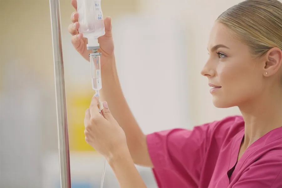 - Установка капельницы. Медсестра обрабатывает кожу антисептиком, выбирает подходящую вену (обычно на локтевом сгибе) и устанавливает катетер. Скорость введения регулируется капельным счётчиком или инфузоматом.