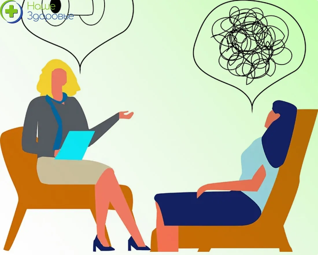 Во время консультации психотерапевта обсуждаются причины обращения. Клиент делится своими переживаниями, а терапевт задаёт дополнительные вопросы.